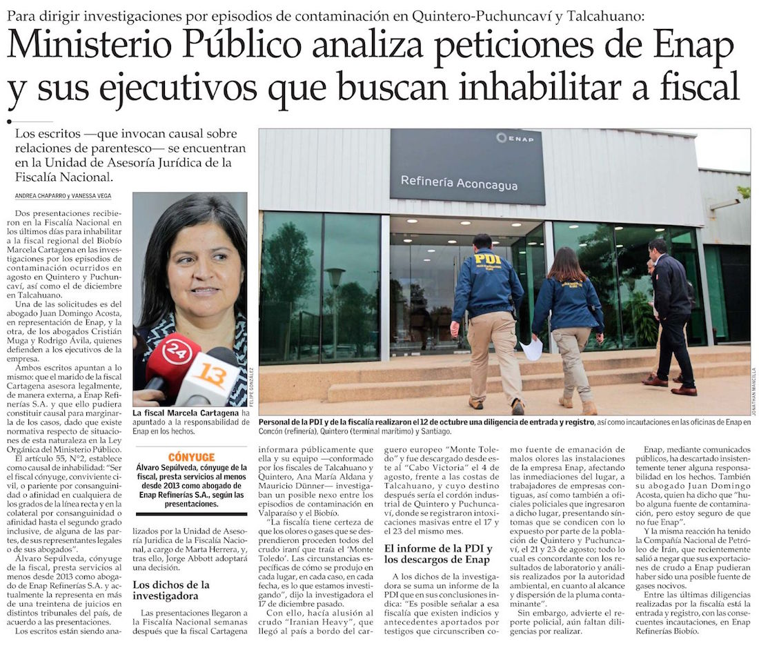 Enap pide inhabilitar a fiscal que investiga intoxicaciones por ser esposa de uno de sus abogados - (biobiochile online)