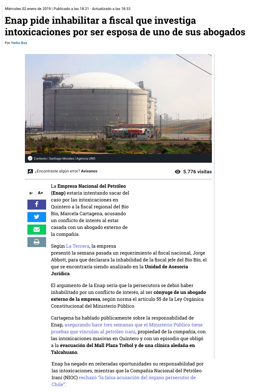 Ministerio Público analiza peticiones de Enap y sus ejecutivos que buscan inhabilitar a fiscal - (El Mercurio de Santiago)