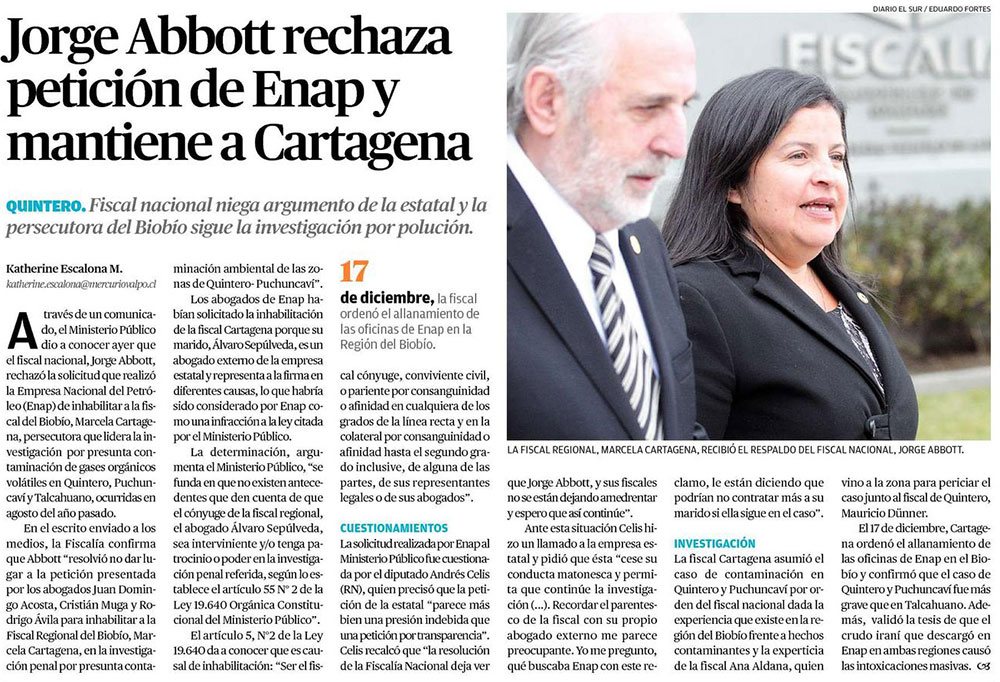 Abbott rechaza petición de Enap y mantiene a fiscal - (El Mercurio de Santiago)