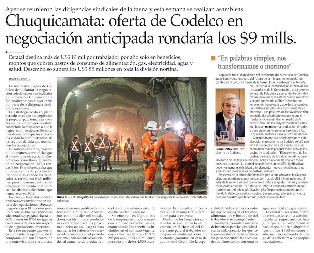 Sindicatos de Codelco votarán mañana propuesta de adelantar negociación colectiva - (Diario Financiero)