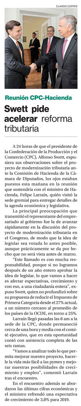 Reforma tributaria: CPC pide agilizar debate y aprobar idea de legislar durante este mes - (Diario Financiero)