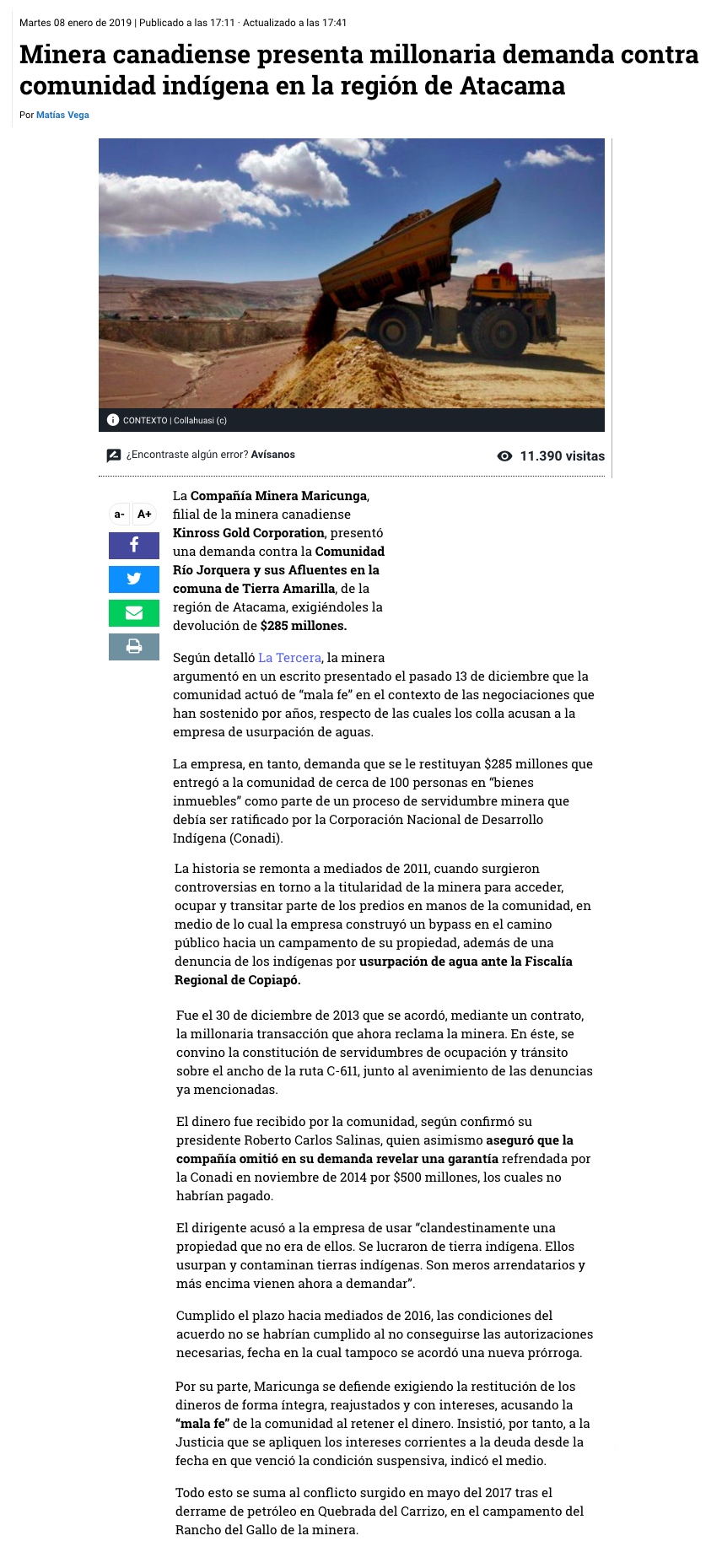 Minera Maricunga demanda a collas por $285 millones - (El Diario de Atacama)