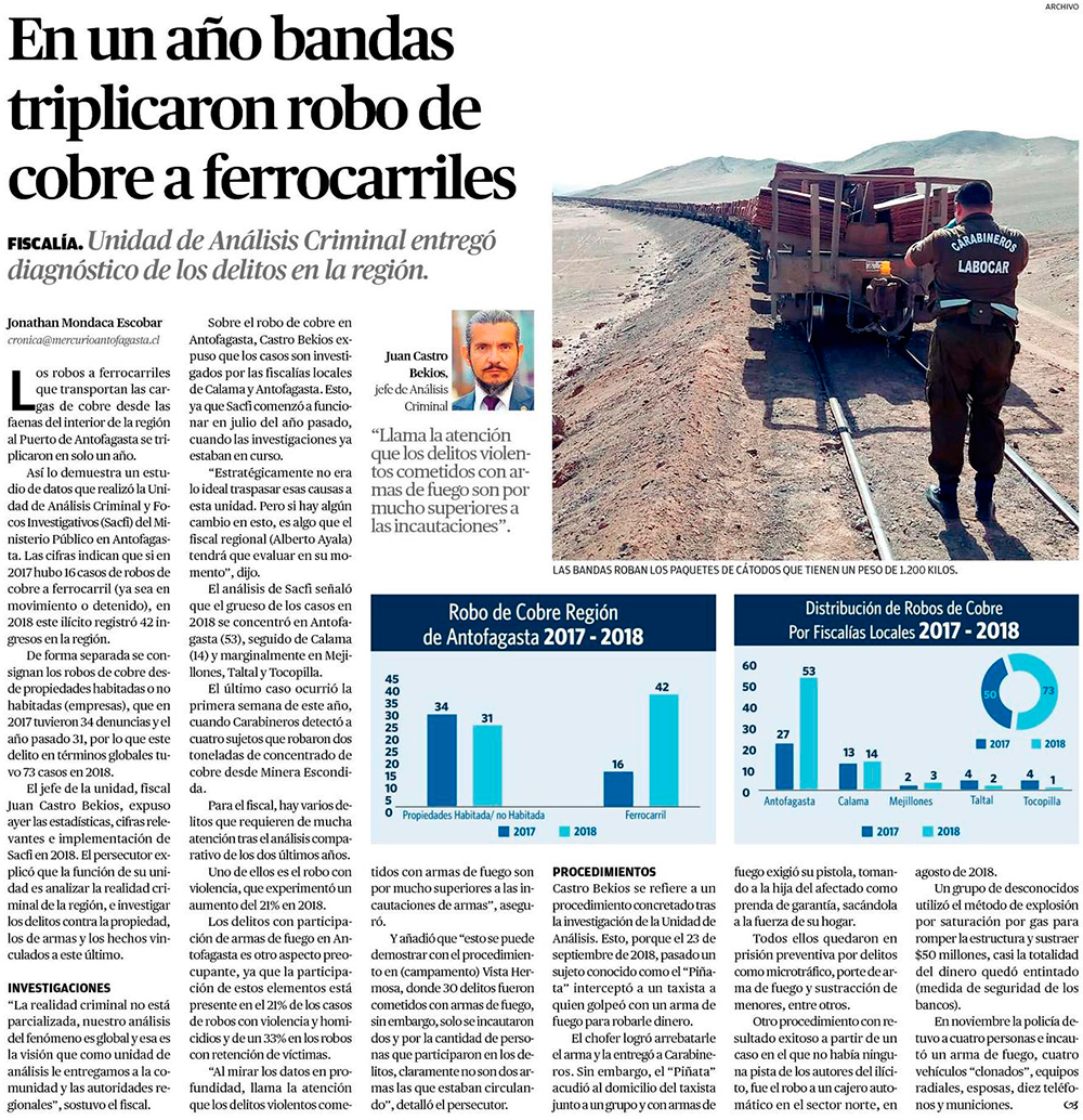 Casos de robos de cobre al ferrocarril en la región se triplicaron en solo un año - (Estrella de Antofagasta)