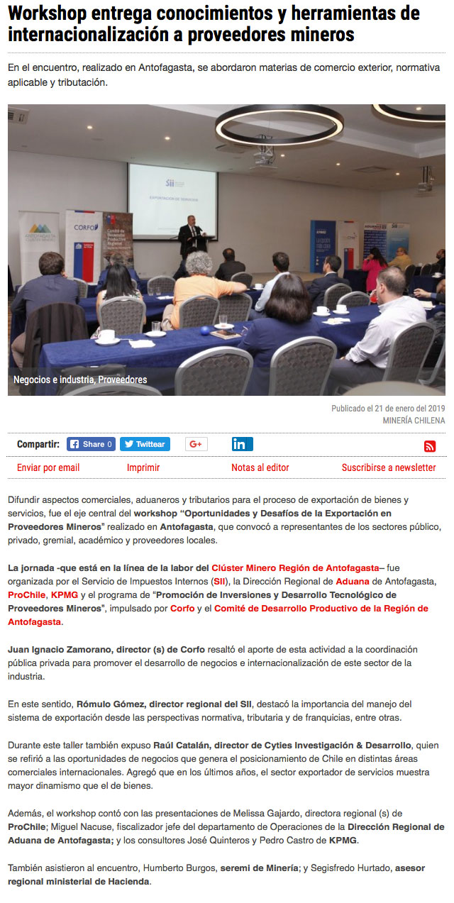 Workshop promueve oportunidades de exportación de servicios a proveedores mineros - (portalminero)