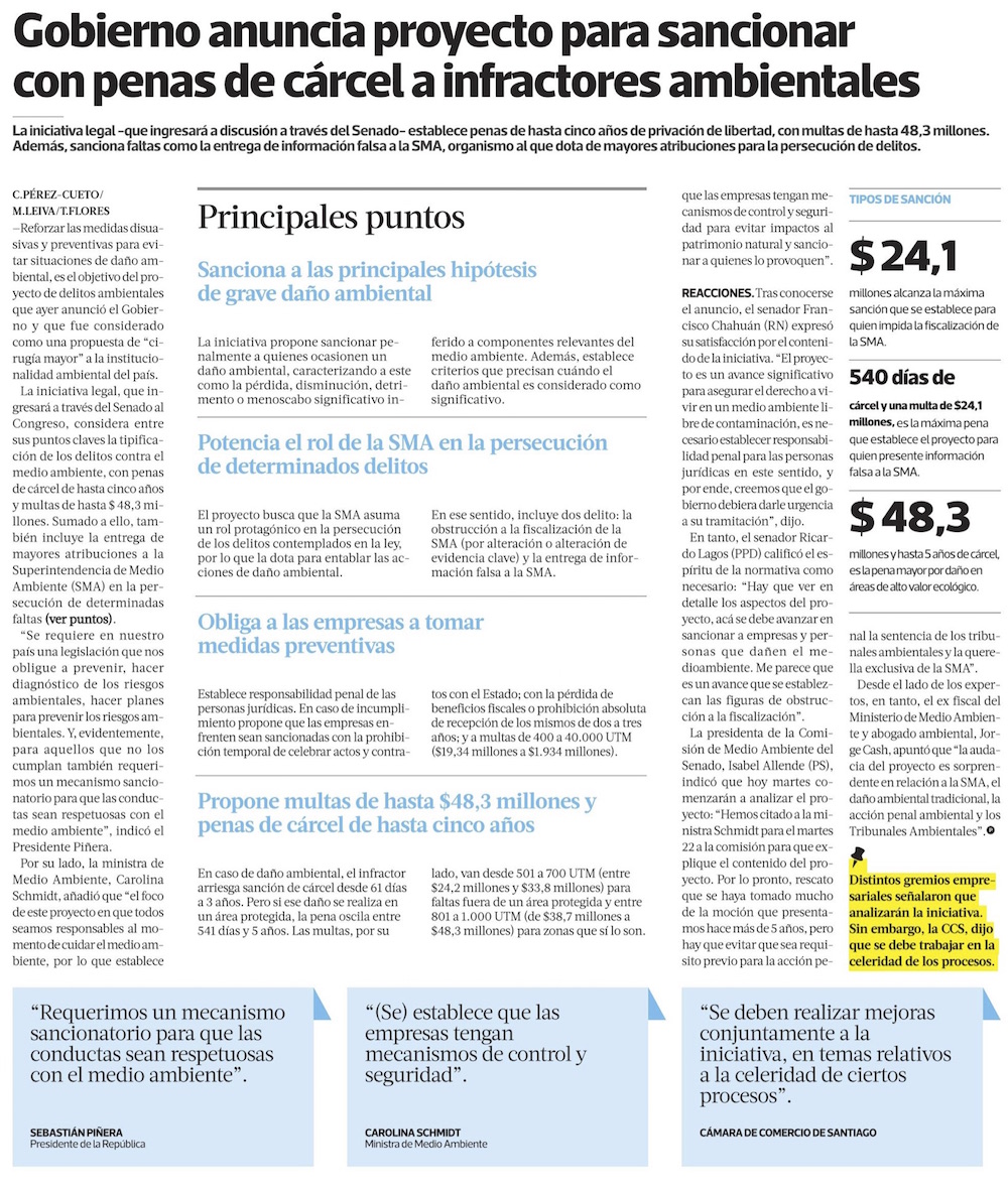 Empresas que cometan delitos ambientales arriesgan perder contratos con el Estado - (Diario Financiero)