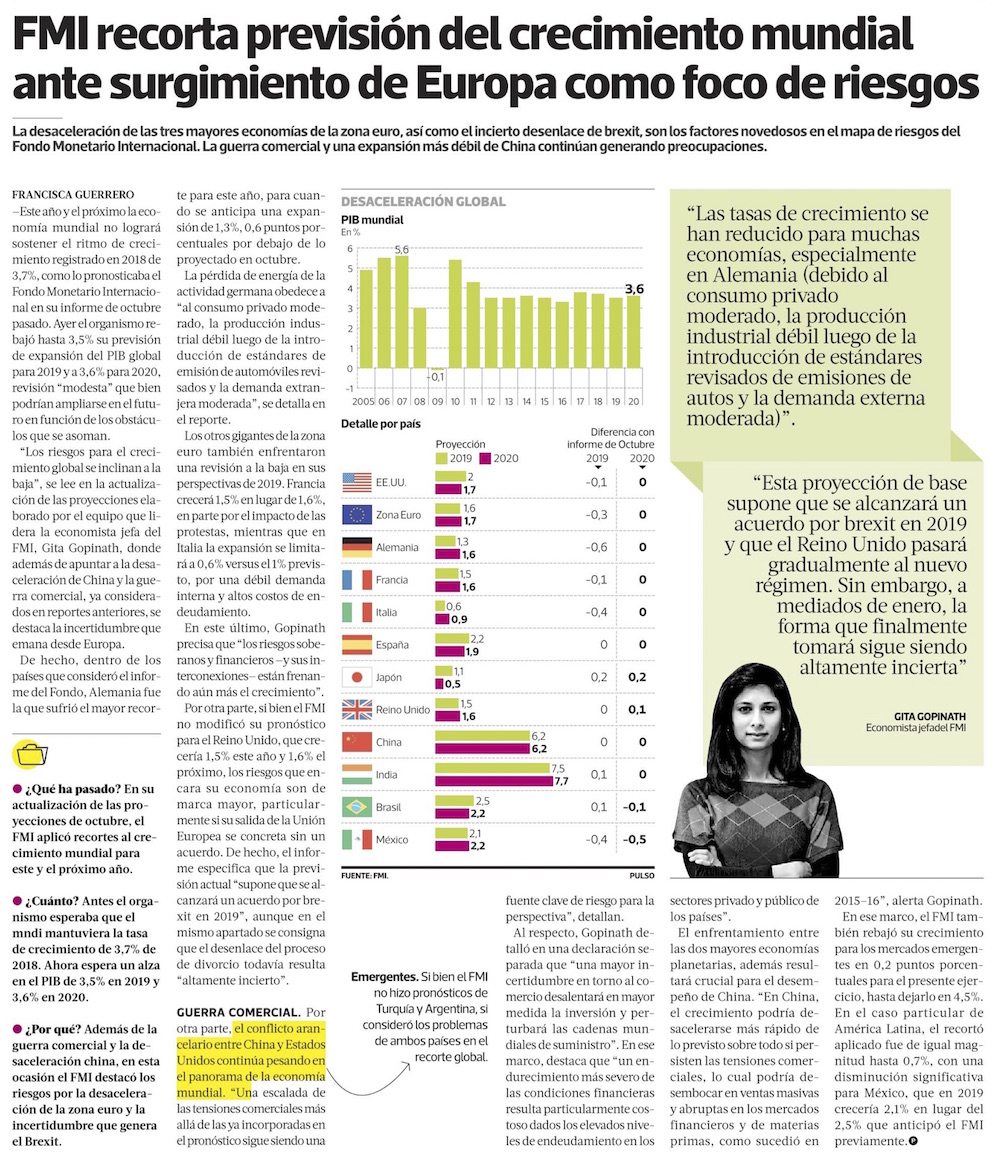 FMI proyección de crecimiento global y la guerra comercial le suma más riesgos - (Diario Financiero)