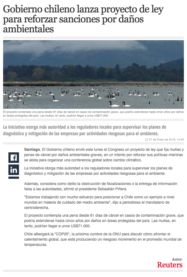 Empresas que cometan delitos ambientales arriesgan perder contratos con el Estado - (Diario Financiero)