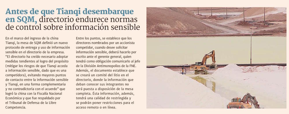 SQM sorprende con restrictivo protocolo de acceso a la información para directores de Tianqi - (El Mercurio de Santiago)