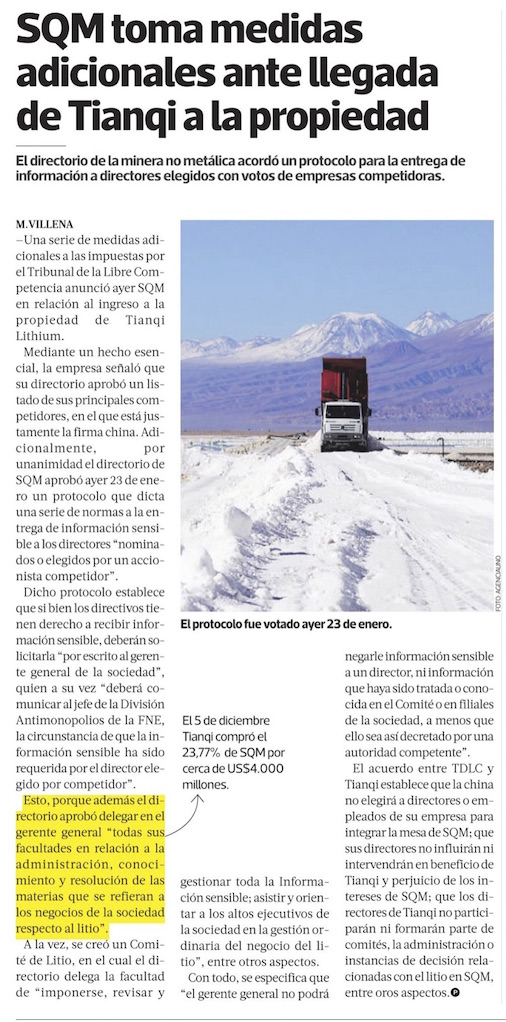 SQM sorprende con restrictivo protocolo de acceso a la información para directores de Tianqi - (El Mercurio de Santiago)