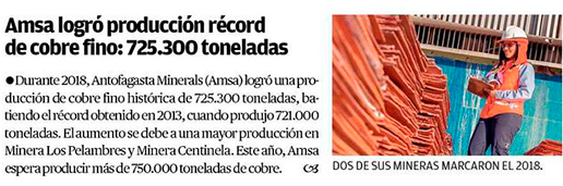 Antofagasta Minerals alcanzó récord de toneladas de cobre en 2018 - (El Mostrador)