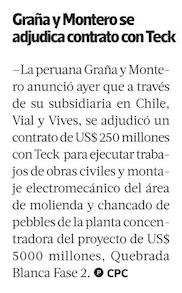 Peruana Graña y Montero acuerda venta de subsidiaria chilena Adexus a Advent - (americaeconomia online)