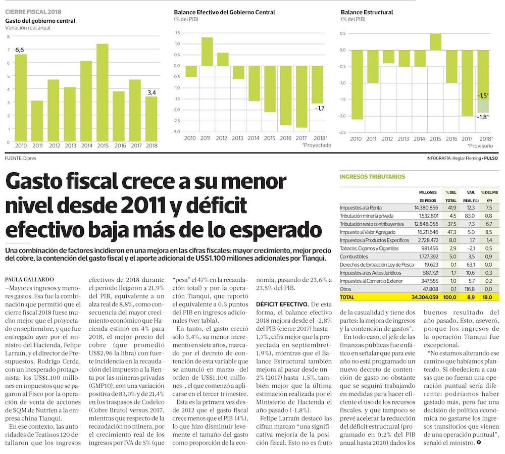 Fisco subejecuta el Presupuesto en 2018 y déficit cae a menor nivel en 4 años - (Diario Financiero)