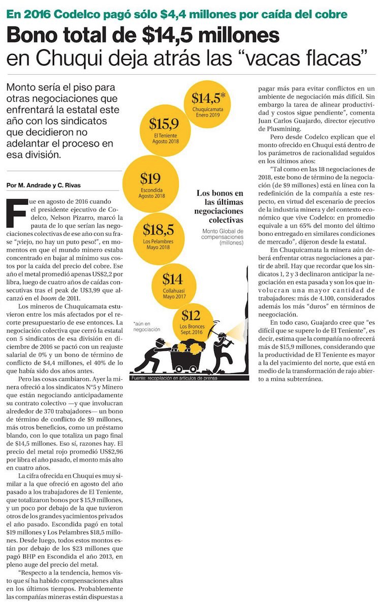 Sindicatos de Chuqui aceptaron propuesta con bonos por casi $15 millones - (El Mercurio de Antofagasta)