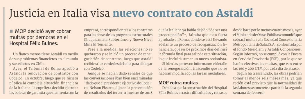 Tribunal italiano aprobó a Astaldi renegociación de contratos con Codelco - (Pulso)