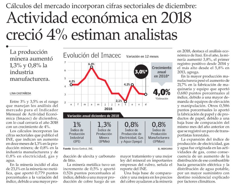 Datos de la industria ratifican avance del PIB de 4% en 2018 - (Diario Financiero)
