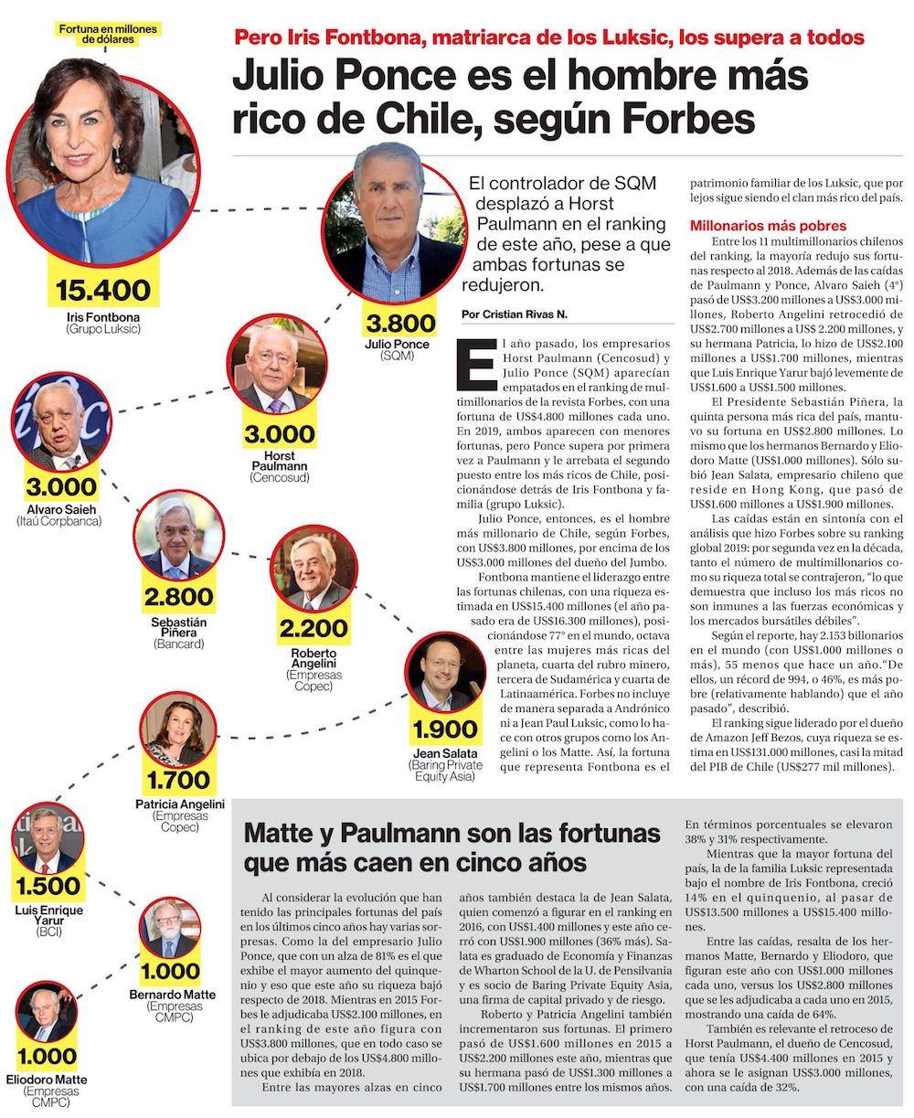 Ranking de millonarios Forbes: Horst Paulmann pierde US$1.800 millones y Ponce Lerou lo desplaza del 2° lugar - (emol)