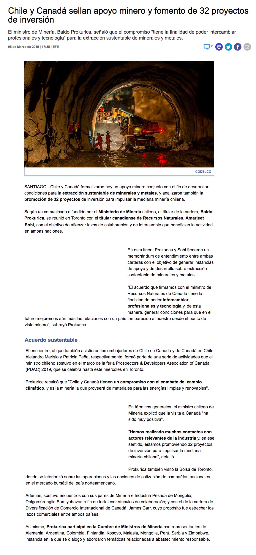 Ministro Prokurica inaugura pabellón de Chile en feria internacional minera PDAC 2019, en Canadá - (Estrategia)