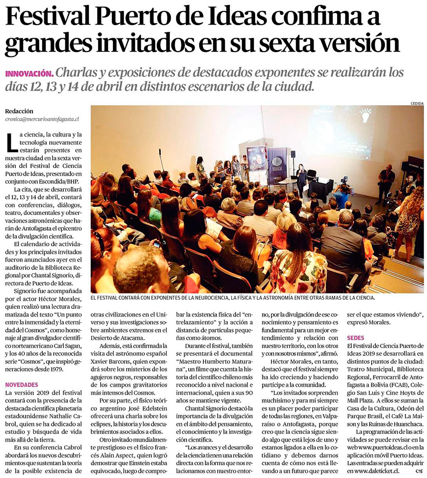 Antofagasta será el epicentro científico junto al Festival de Ciencia Puerto de Ideas 2019 - (El Mostrador)
