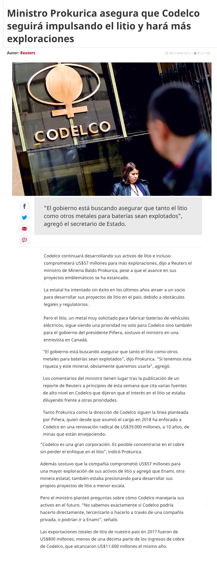 Chilena Codelco seguirá impulsando el litio, pese a lento avance - (americaeconomia online)