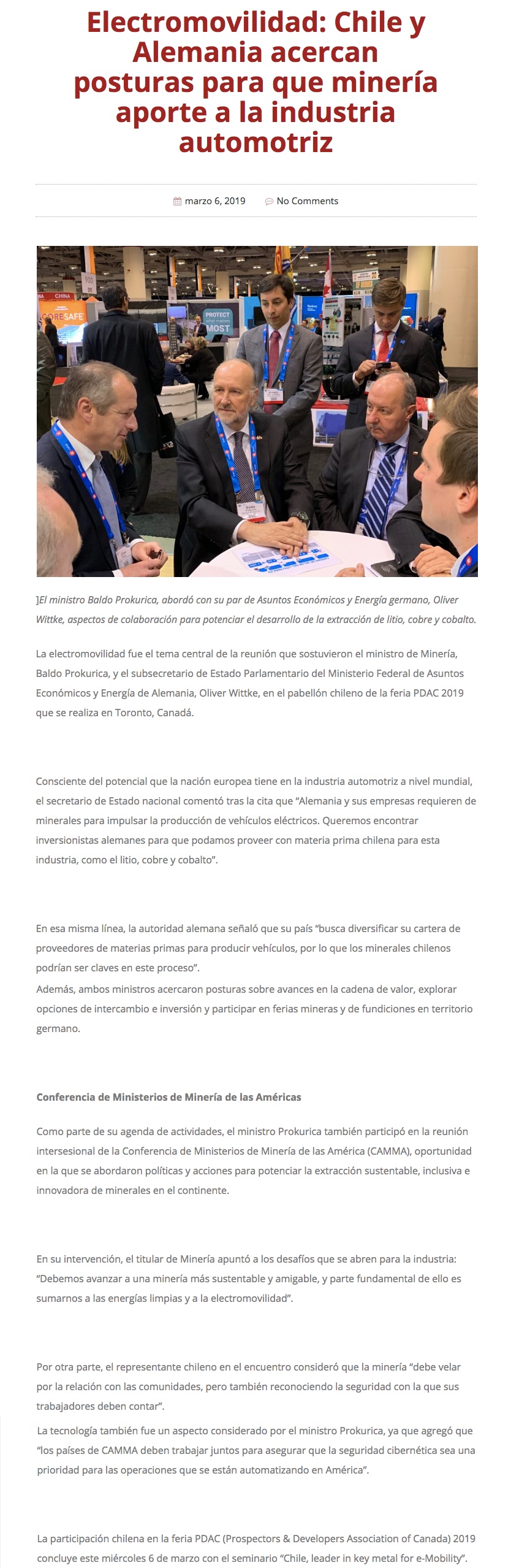 Chile y Alemania acercan posturas para que la minería local aporte a la industria automotriz - (Pulso Online)