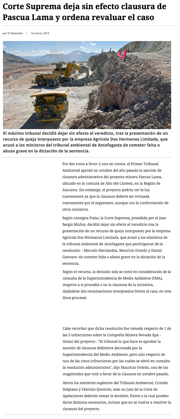 Corte Suprema dejó sin efecto clausura definitiva del proyecto Pascua Lama - (El Diario de Atacama)