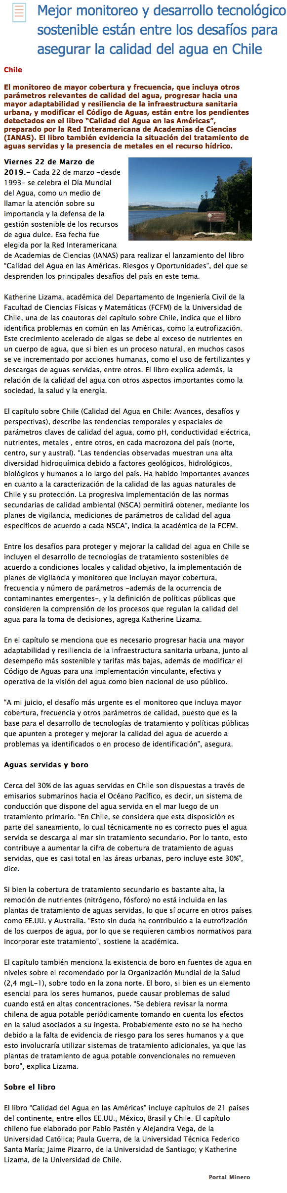 Inédita política hídrica busca asegurar el agua para consumo de las personas - (El Mercurio de Valparaíso)