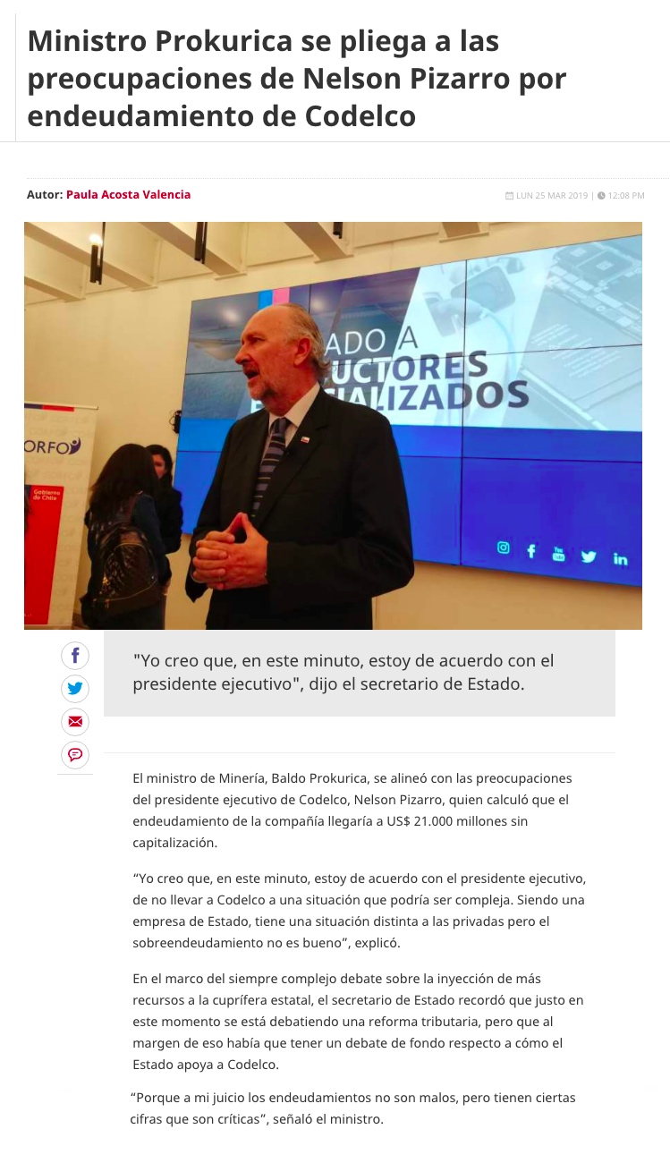 “No podemos tomar definiciones con Codelco antes que se resuelva la reforma tributaria” - (La Segunda)