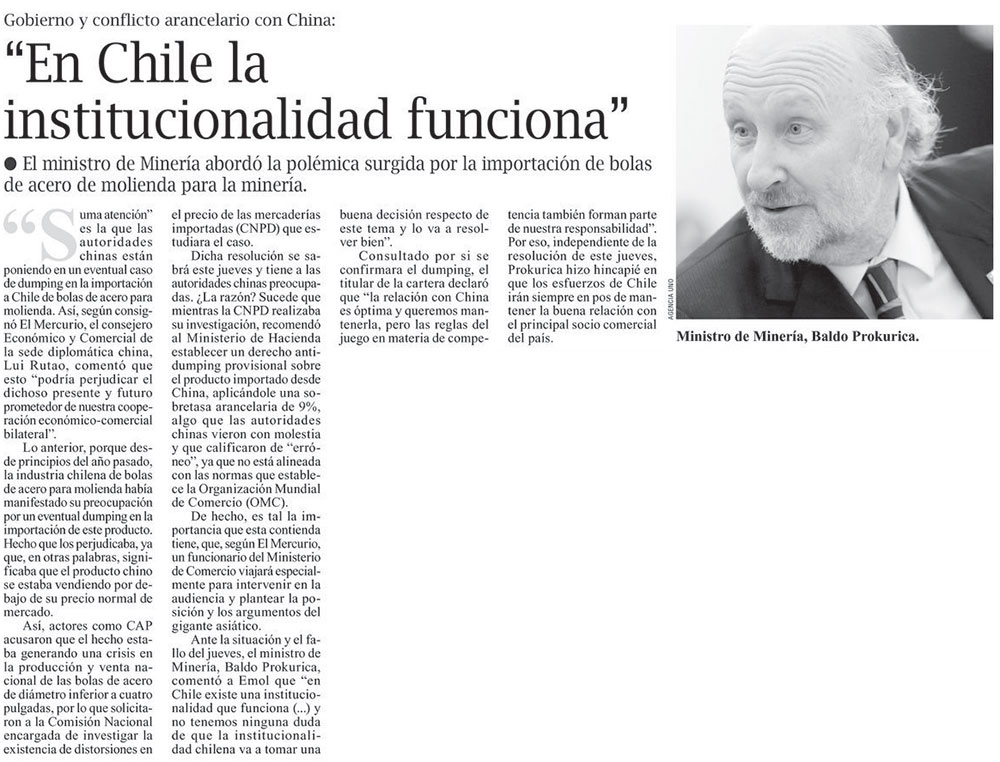 Gobierno y conflicto arancelario con China: Queremos mantener la óptima relación, pero en Chile la institucionalidad funciona - (emol)