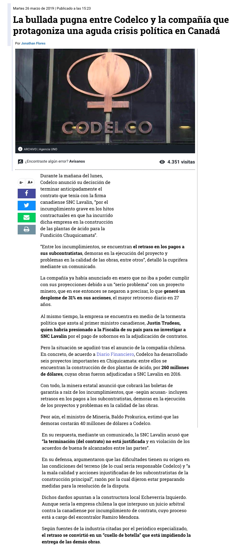 Firma canadiense responde a Codelco y no descarta demandas - (El Mercurio de Santiago)