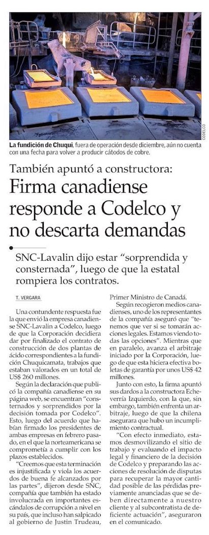 La bullada pugna entre Codelco y la compañía que protagoniza una aguda crisis política en Canadá - (biobiochile online)