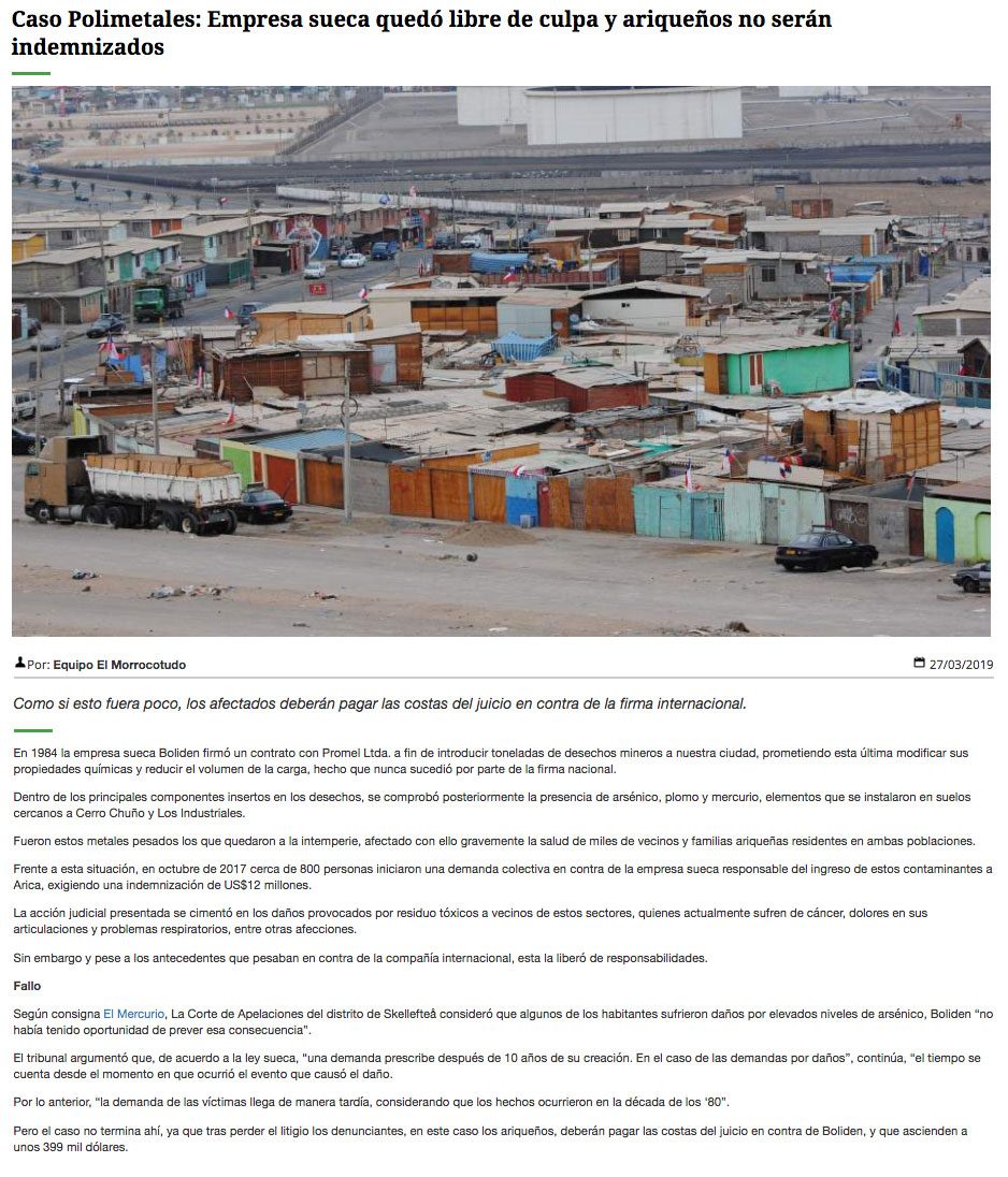 Corte sueca negó compensación a afectados por polimetales - (Estrella de Arica)