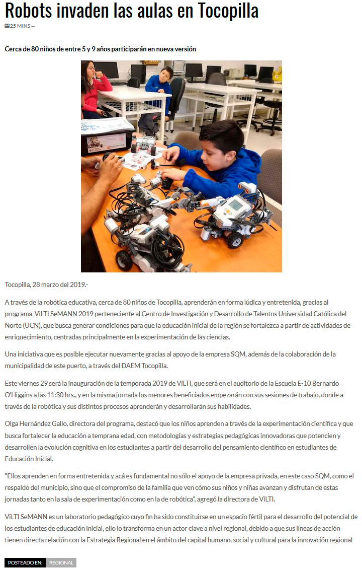 80 niños participan en jornada de robótica de la UCN en Tocopilla - (El Mercurio de Antofagasta)