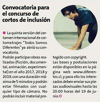 Concurso premiará los mejores cortometrajes sobre inclusión - (El Mercurio de Antofagasta)