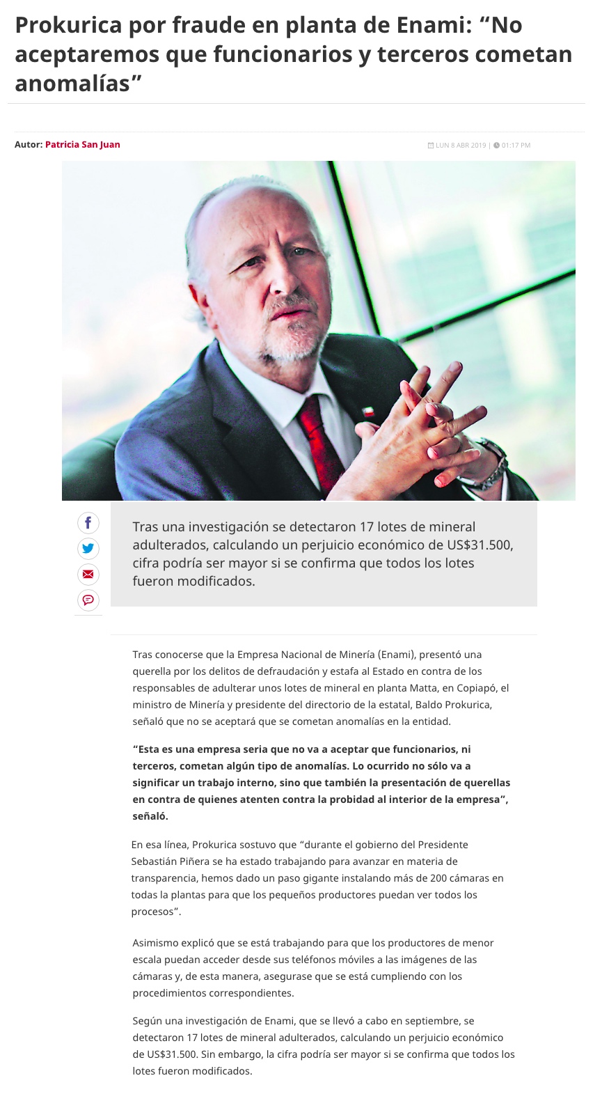 Prokurica y fraude en Enami: "No aceptaremos ningún tipo de anomalías" - (norteminero online)