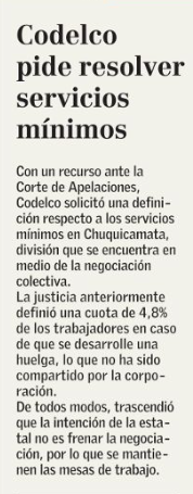 Codelco pide a la justicia congelar negociación colectiva con gremios de la mina Chuquicamata - (emol)