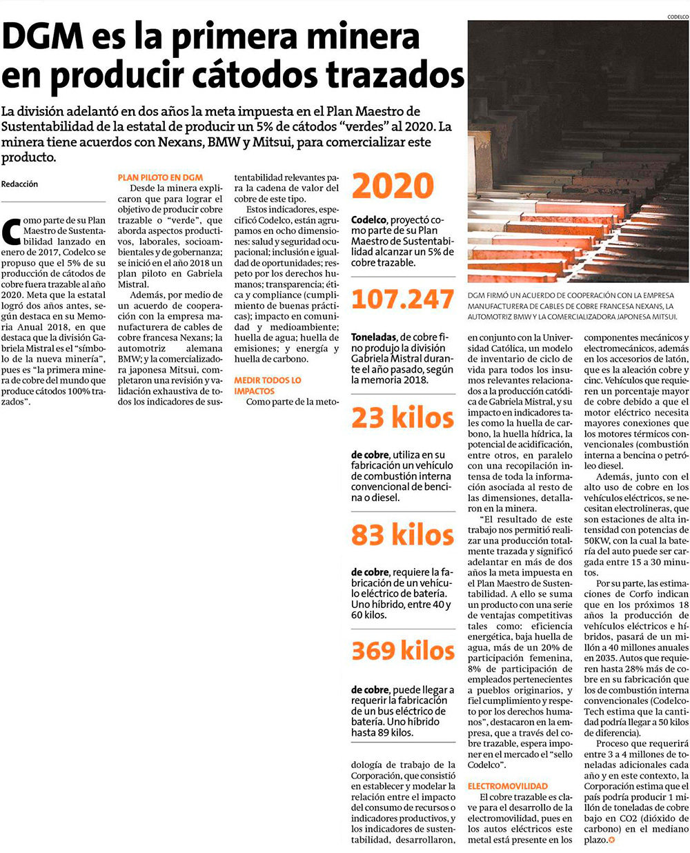 Gabriela Mistral es la primera minera de cobre del mundo que produce cátodos 100% “verdes” - (El Mercurio de Calama)