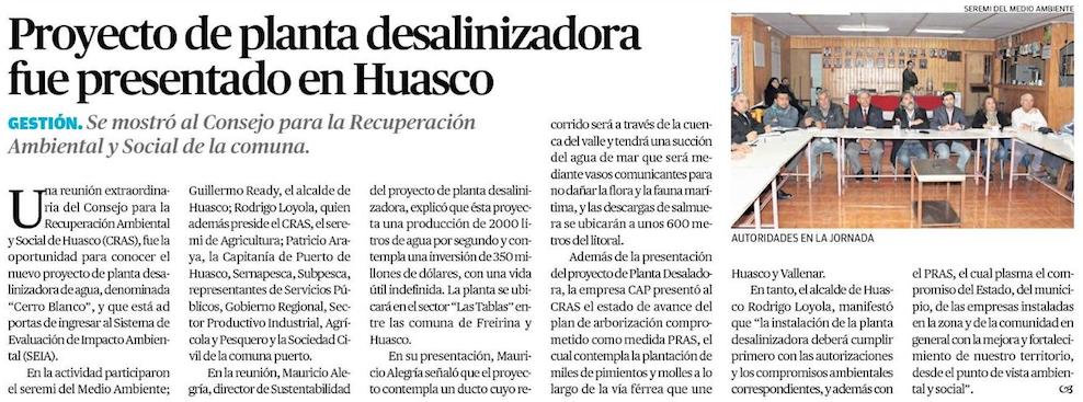Proyecto de Planta Desalinizadora fue presentada al Consejo para la Recuperación Ambiental y Social en Huasco - (El Chañarcillo)