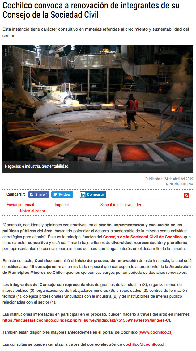 Cochilco convoca a elecciones de su Consejo de la Sociedad Civil - (reporteminero)