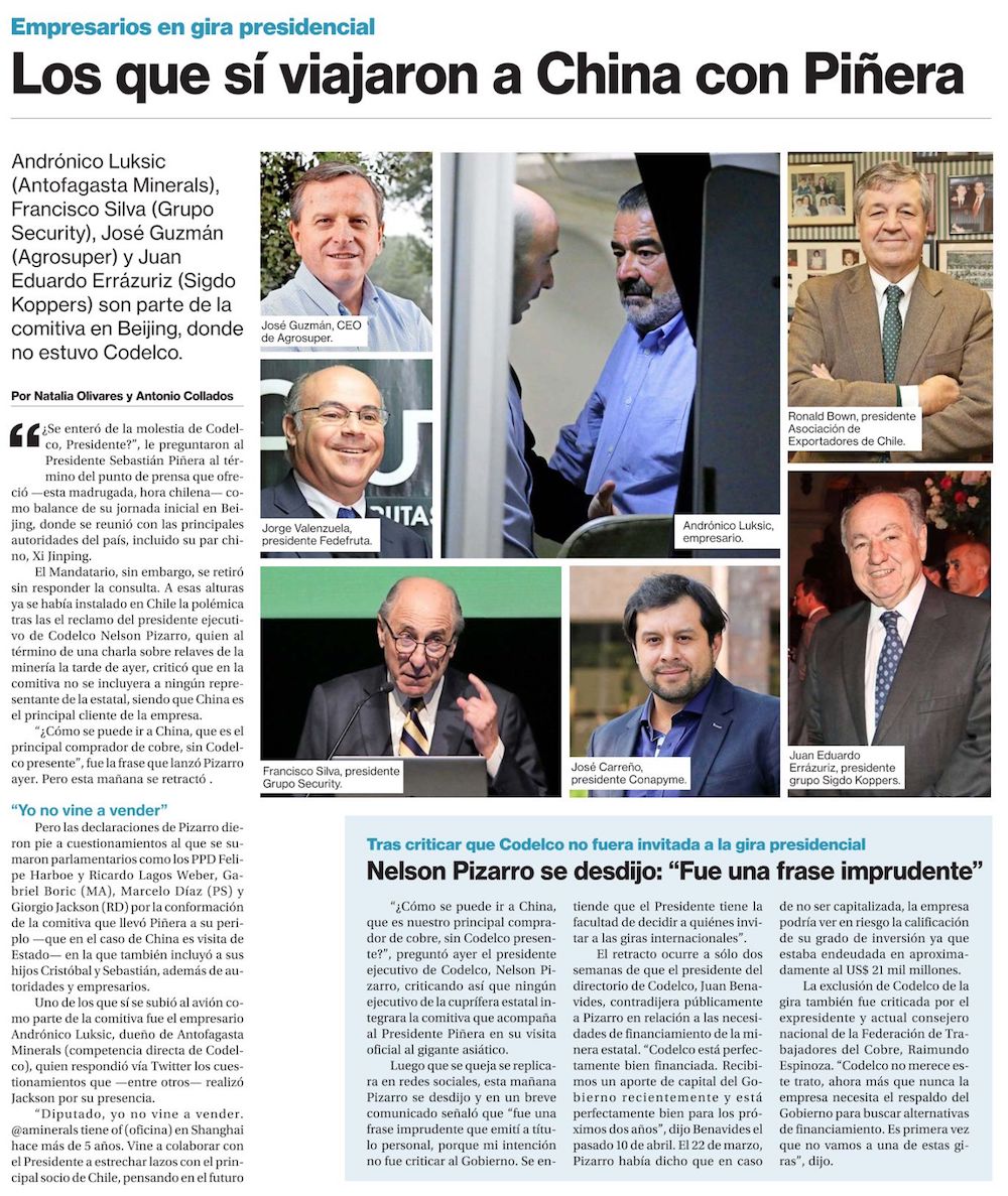 Piñera llama a CEO de Codelco desde China tras impasse y Pizarro asegura que está “todo en paz” - (Pulso)