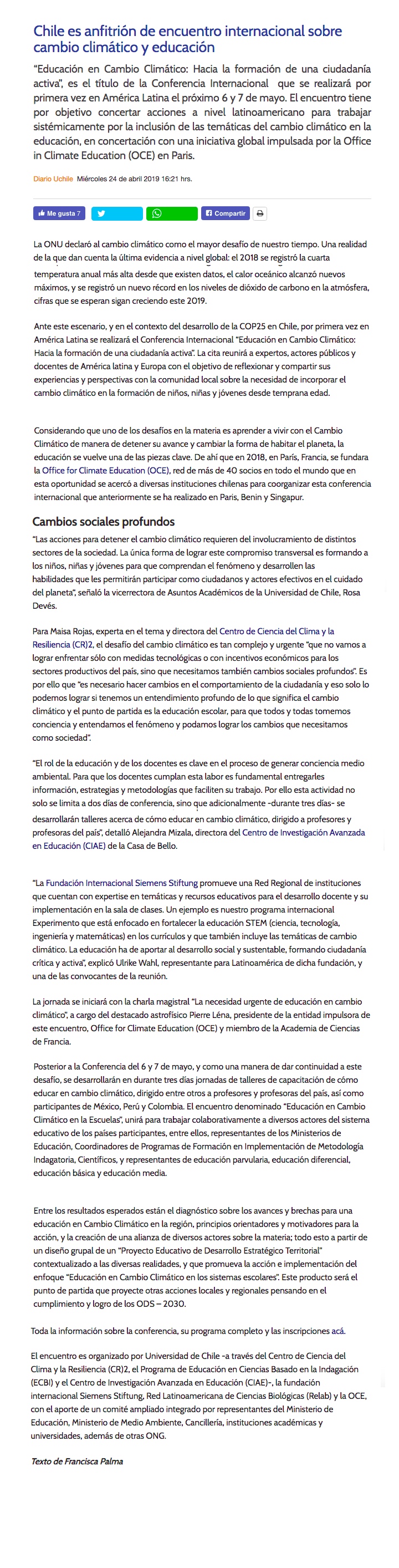 Miércoles, 24 de Abril de 2019