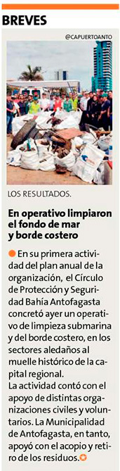 Buzos retiraron 3 toneladas de basura desde la poza histórica - (El Mercurio de Antofagasta)