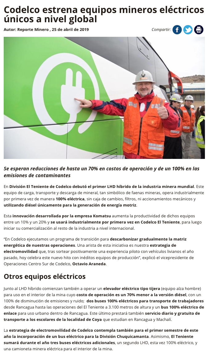 División El Teniente presentó la primera flota eléctrica minera de Chile - (El Tipógrafo)