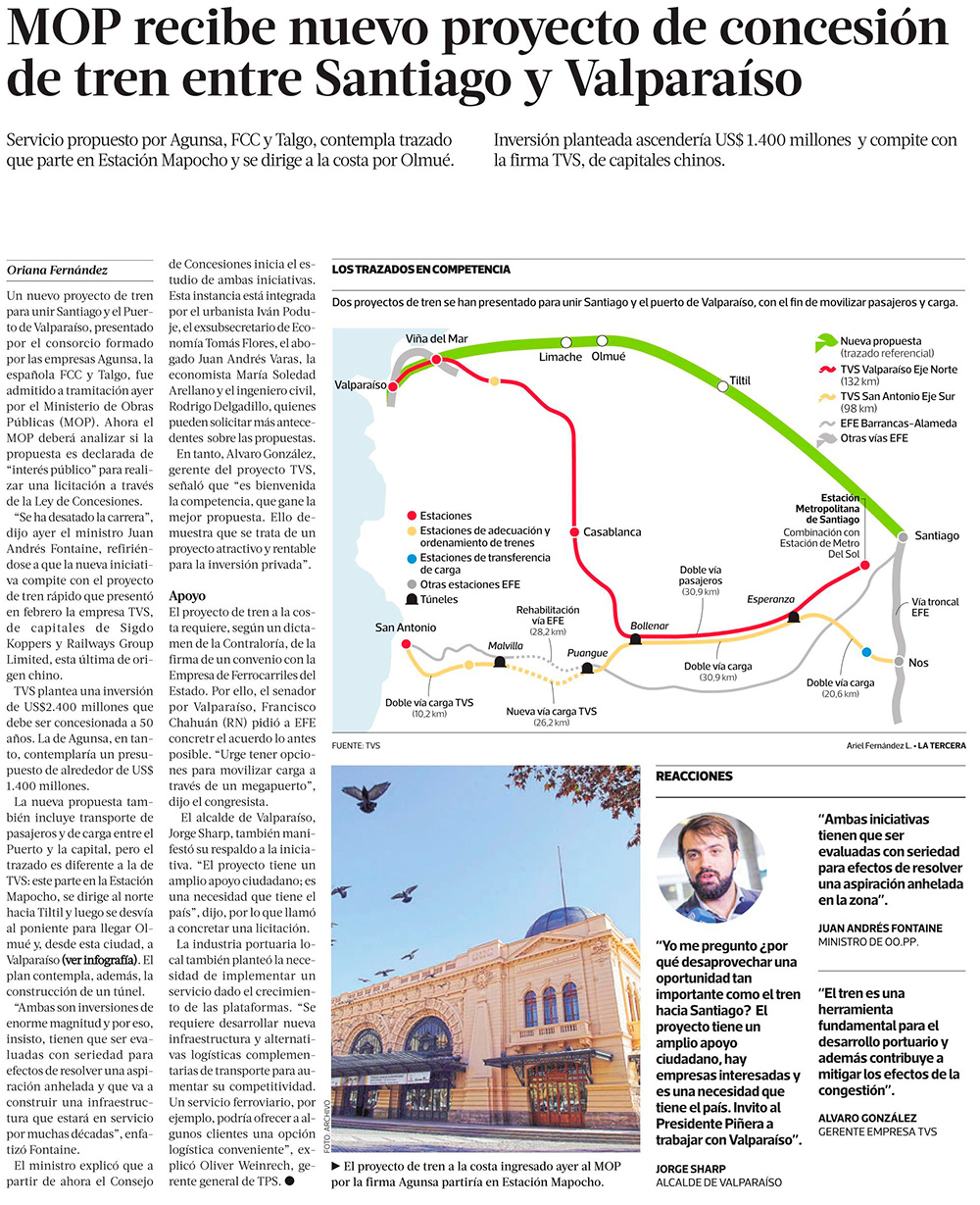 Nuevo interesado en tren a Valparaíso propone conexión en Estación Mapocho - (El Mercurio de Santiago)