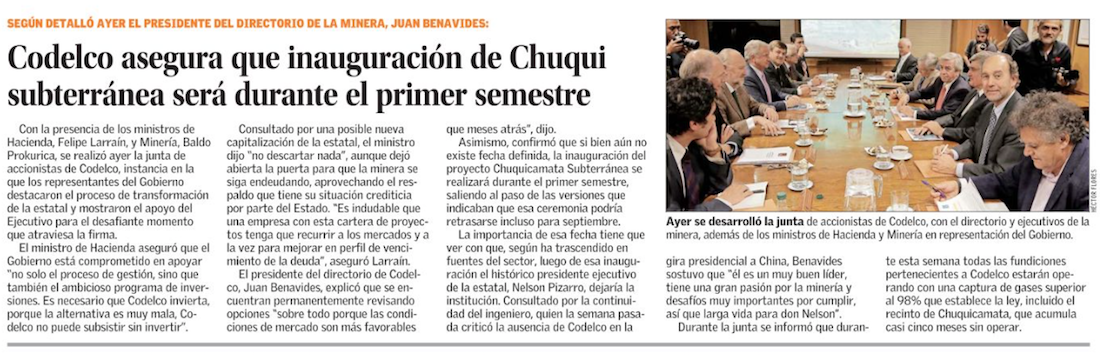 “Nos vamos a preocupar de que Codelco mantenga las condiciones de acceso al mercado de capitales” - (Diario Financiero)