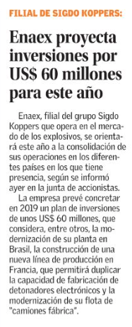 Enaex prevé inversiones por US$ 60 millones este año para consolidar operaciones en Chile y otros mercados - (Estrategia)