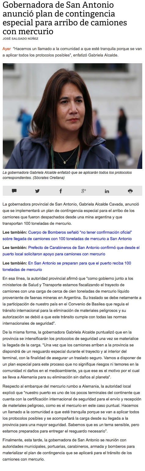 Alcalde de San Antonio descarta descoordinación para tránsito de camiones con mercurio líquido al puerto. - (portalportuario)