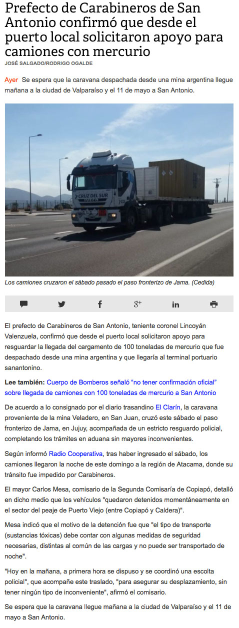 Alcalde de San Antonio descarta descoordinación para tránsito de camiones con mercurio líquido al puerto. - (portalportuario)