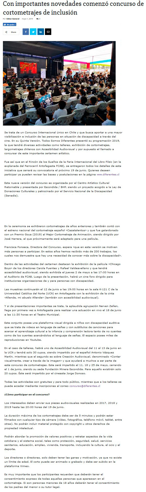 Varias novedades trae concurso de cortos de inclusión - (El Mercurio de Antofagasta)