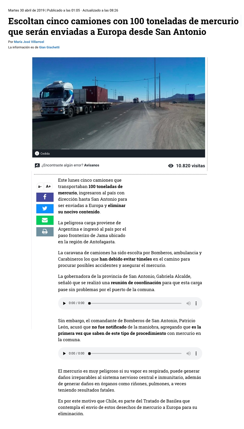 Camiones cargados con mercurio estarán 10 días en la Región de Valparaíso - (elciudadano)