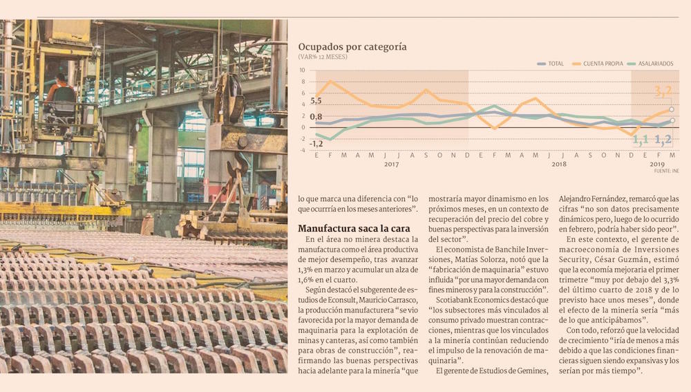 Producción industrial cayó 0,8% en marzo, debido a nueva contracción de minería - (eldinamo)